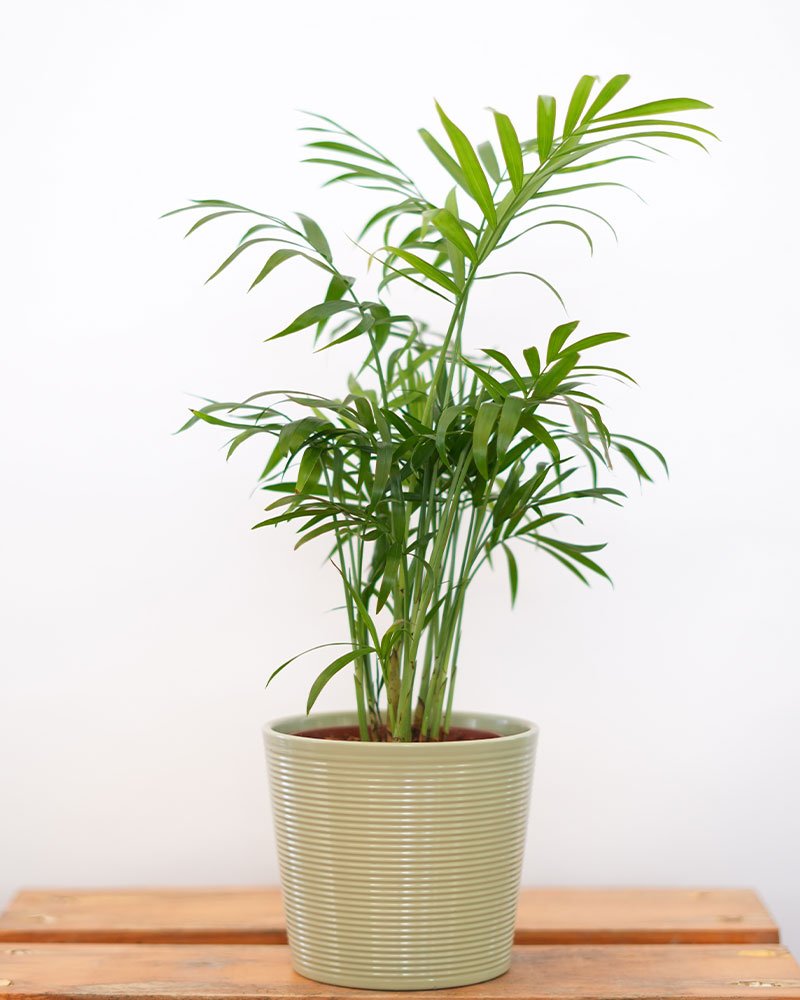 A compact palm variety that thrives in humidity. Water before the soil fully dries and mist the leaves weekly with a water-vinegar solution to prevent pests.